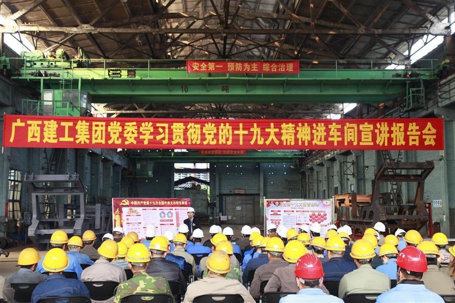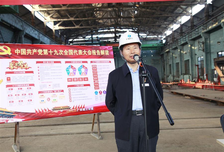 12月6日下午,廣西建工集團(tuán)黨委委員、副總經(jīng)理侯立林到冶建公司壓力容器制造廠鉚焊車(chē)間進(jìn)行學(xué)習(xí)貫徹黨的十九大精神進(jìn)工地、進(jìn)車(chē)間宣講報(bào)告。