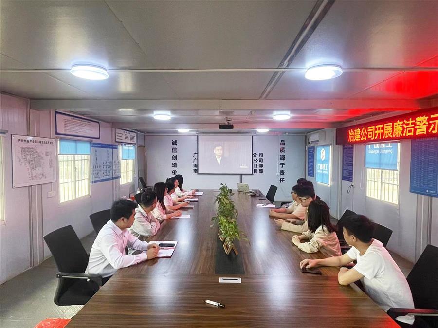 活動中,宣講團成員展示了愛國朗誦——《有為·無畏》;組織項目部員工觀看了廉潔警示教育片《高壓懲治腐敗》。