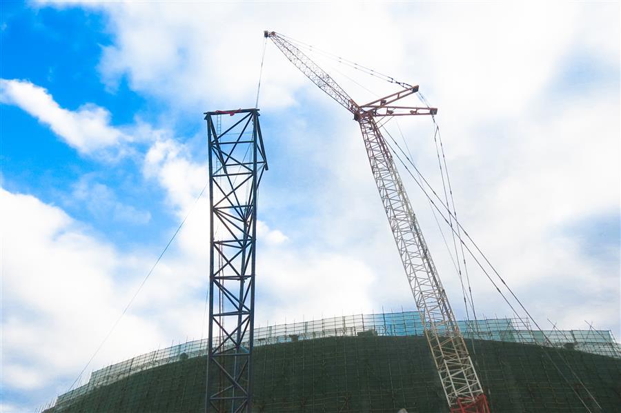 靖西市乒乓主題體育公園鋼結(jié)構(gòu)罩棚空間桁架采用三角桁架形式,桁架柱向外傾斜,與地面夾角呈65°,重量達(dá)25噸,桁架柱即徑向桁架為三角管桁架,整體結(jié)構(gòu)呈倒L形,根據(jù)其受力特點(diǎn)可分為懸挑式和前端支承式,懸挑式根部設(shè)置撐桿,撐桿連接在看臺(tái)勁性柱上。此次桁架吊裝難度大、技術(shù)要求高,項(xiàng)目部從構(gòu)件進(jìn)場(chǎng)、精準(zhǔn)定位、吊裝,每一道工序、每一個(gè)環(huán)節(jié)都實(shí)行全過(guò)程無(wú)縫隙標(biāo)準(zhǔn)化管理,全力確保安裝和細(xì)節(jié)符合技術(shù)要求。