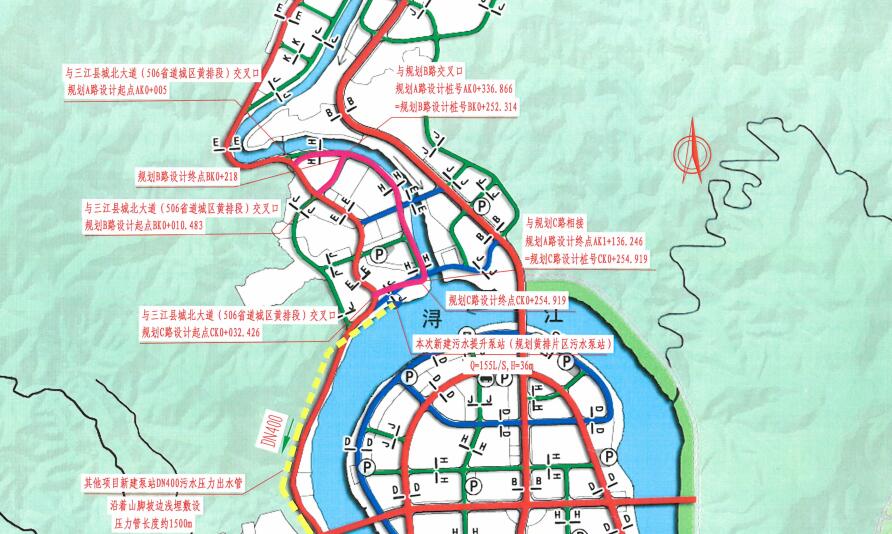 該項目位于柳州市三江侗族自治縣黃排片區(qū),結(jié)合規(guī)劃區(qū)發(fā)展的功能需求,圍繞著三江縣新三江中學(xué)學(xué)校地塊,規(guī)劃形成“一帶、一環(huán)、四心、五軸、七片”的城市結(jié)構(gòu)體系與“山、水、城、田、人”相融的組團城市格局?!耙粠А敝缸詵|向西貫穿城區(qū)的潯江風(fēng)情帶,連接縣城多個片區(qū);“一環(huán)”是由潯江大道-侗鄉(xiāng)大道-河西老城西環(huán)線-宜陽大道構(gòu)成的城市環(huán)線;“四心”分別是指潯江半島行政文體中心、河?xùn)|侗鄉(xiāng)民族文化中心、大洲島旅游活動中心和火車南站客運樞紐中心;“五軸”分別是指連接到城市環(huán)線的桂三高速公路連接線、209 國道周坪段、321 國道周坪段、龍吉大道和三柳高速公路程村連接線;“七片”則分別是指黃排片區(qū)、河西老城片區(qū)、河?xùn)|新城片區(qū)(含潯江半島)、周坪片區(qū)、大洲島片區(qū)、龍吉片區(qū)和火車南站片區(qū)。
