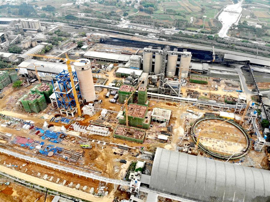 “開始澆筑!”3月15日下午2點40分,隨著魚峰水泥技改項目總負(fù)責(zé)人的一聲令下,4臺混凝土泵車和混凝土攪拌車準(zhǔn)時就位,4臺天泵同時啟動澆筑。這標(biāo)志著項目熟料庫的筒體滑膜施工正式啟動,并以每小時10厘米的速度向上滑升。項目部開足馬力、鉚足干勁,迅速掀起“奮戰(zhàn)一季度”新一輪項目建設(shè)高潮。