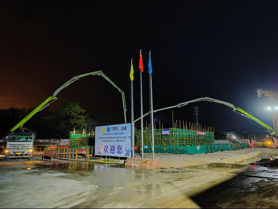 11月17日清晨,天蒙蒙亮,混凝土罐車陸續(xù)駛?cè)牖A(chǔ)分公司承建的柳江拉堡污水處理廠二期及深度處理工程項目,開始進行高效沉淀6.7米平臺梁板澆筑混凝土作業(yè),工人正在準備生物池預(yù)埋件安裝及側(cè)壁板鋼筋綁扎工作,二沉池計劃在當(dāng)天開始進行滿水試驗,現(xiàn)場各項工作正在緊張有序地進行。
