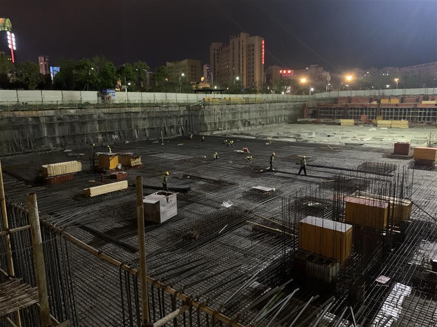 時至深夜,贛州市人民醫(yī)院新院職工交流房項目工作人員依舊奮戰(zhàn)在施工現(xiàn)場,現(xiàn)場機(jī)械轟鳴聲、焊接切割聲交織在一起,一片熱火朝天的大干景象。目前,130余名施工作業(yè)人員全面鋪開各個工作面,底板防水施工、承臺鋼筋綁扎、磚胎膜砌筑、樁頭破除、地下室頂板架子搭設(shè)和模板安裝等工作都在有序推進(jìn),各班組都在按照計劃加班加點(diǎn)推進(jìn)項目建設(shè)進(jìn)度。
