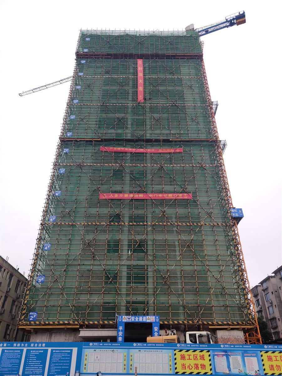 項(xiàng)目于2021年底開(kāi)工,僅用16天時(shí)間就完成了地下室結(jié)構(gòu)施工。年后復(fù)工以來(lái),項(xiàng)目部緊盯目標(biāo)任務(wù),細(xì)化工作目標(biāo),制定科學(xué)精準(zhǔn)的流水施工方案,細(xì)排關(guān)鍵節(jié)點(diǎn)工期,配足施工資源,搶進(jìn)度、抓安全、保質(zhì)量,在全體人員的共同努力下,用時(shí)81天完成了地上17層結(jié)構(gòu)施工,提前17天完成封頂節(jié)點(diǎn)目標(biāo)。此外,項(xiàng)目還榮獲了柳州市2022年上半年“安全文明標(biāo)準(zhǔn)化工地”榮譽(yù)稱號(hào)。