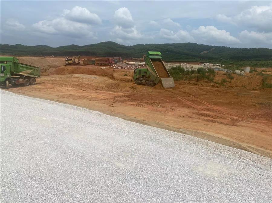 目前,該項目樁號K0+360-K1+200段雨、污水管、級配碎石層完成90%,K1+063橋調(diào)平層施工完成,K0+247橋箱梁預(yù)制完成,樁基施工完成。