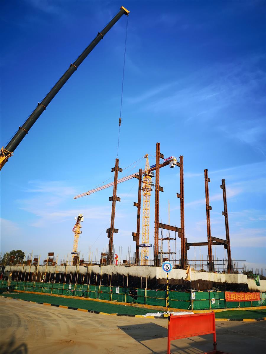 目前,項(xiàng)目正在進(jìn)行主體施工,施工現(xiàn)場(chǎng)正緊張有序地進(jìn)行著模板安裝、鋼筋綁扎、水電管線預(yù)埋、鋼結(jié)構(gòu)吊裝等工作。