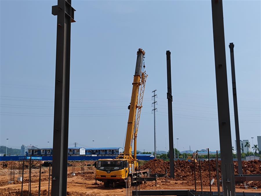 為了7#標準廠房順利封頂?shù)哪繕?,項目部自我加壓,立下軍令狀,在項目掀起大干快上的趕工熱潮。項目部及時協(xié)調(diào)組織土石方、土建、鋼構(gòu)、水電等施工隊伍進場,確保施工順利進行;管理人員與施工隊倒排工期,發(fā)揚“5+2”“白加黑”連續(xù)作戰(zhàn)精神,凝心聚力,奮力沖刺。
