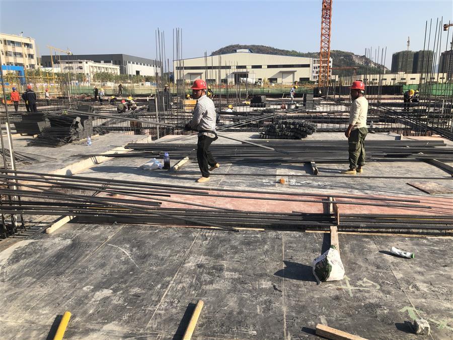 該項(xiàng)目是柳州市重點(diǎn)項(xiàng)目,總建筑面積為8.7萬平方米。目前靜壓樁施工已全部完成;1號(hào)樓E區(qū)頂板完成;H區(qū)底板完成;F區(qū)與G區(qū)底板防水保護(hù)層完成;2號(hào)樓A區(qū)二層模板安裝完成,D區(qū)負(fù)一層滿堂架搭設(shè)完成。