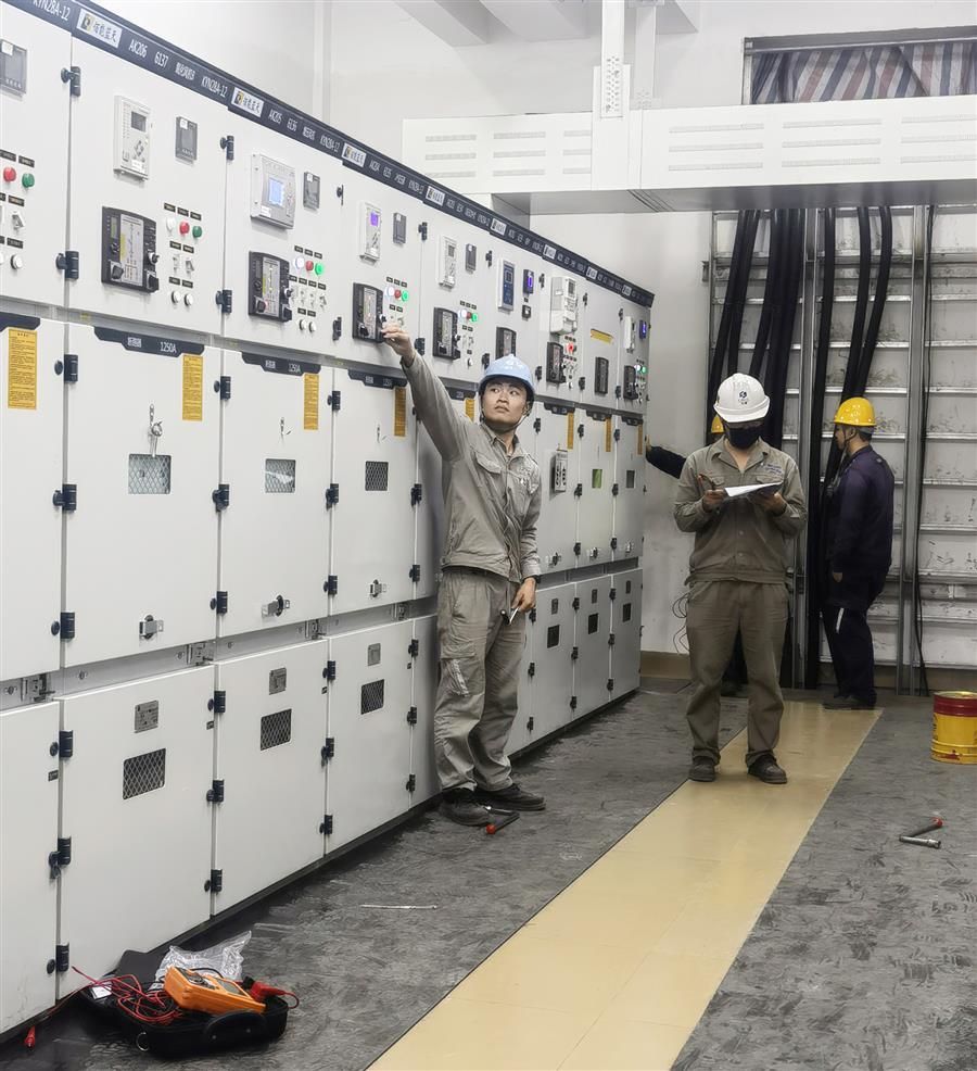 為確保按時順利送電,項目部多次組織技術(shù)人員對電氣樓進(jìn)行檢查確認(rèn),特別是對高低壓柜、隔離開關(guān)等設(shè)備的功能、絕緣進(jìn)行了多次檢查和測試,為保證整個送電過程安全順利進(jìn)行創(chuàng)造了有利條件。