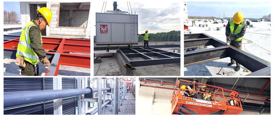 冷風(fēng)機(jī)設(shè)備入場(chǎng)后,項(xiàng)目部立即有序開展焊接吊風(fēng)機(jī)平臺(tái)工作,完成平臺(tái)焊接后,項(xiàng)目部合理安排進(jìn)度計(jì)劃,實(shí)施進(jìn)度管理。經(jīng)過項(xiàng)目部全體人員的連續(xù)奮戰(zhàn),項(xiàng)目4號(hào)庫12臺(tái)冷風(fēng)機(jī)已順利安裝到位,管道安裝完成80%;1號(hào)庫完成4臺(tái)蒸發(fā)式冷凝器安裝工作,下一步進(jìn)行管道安裝。