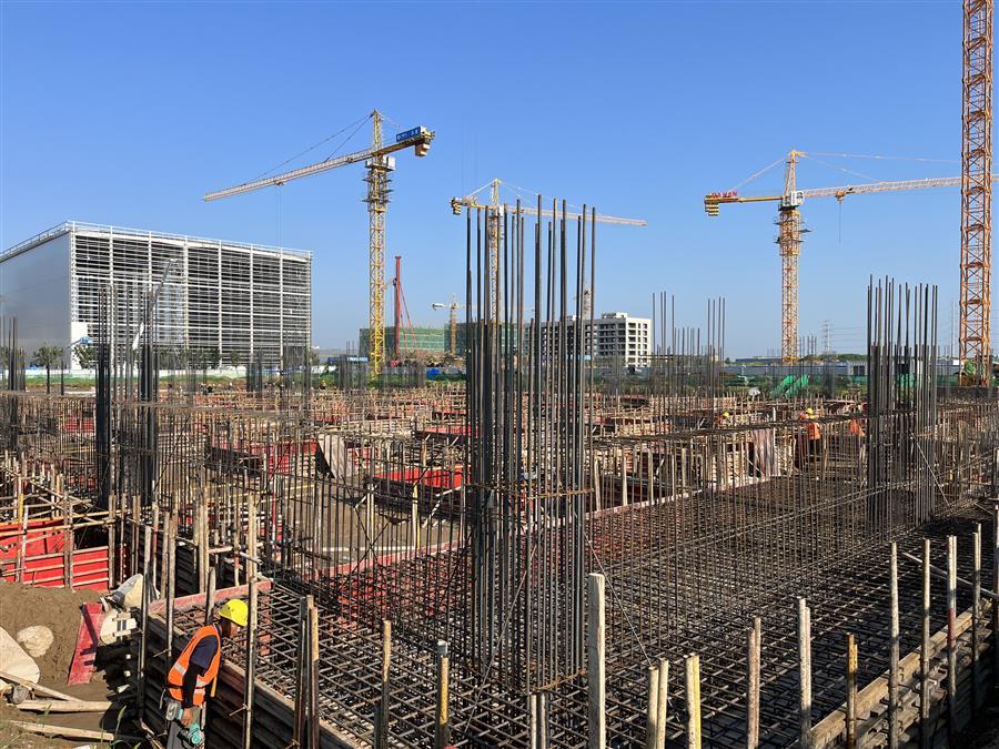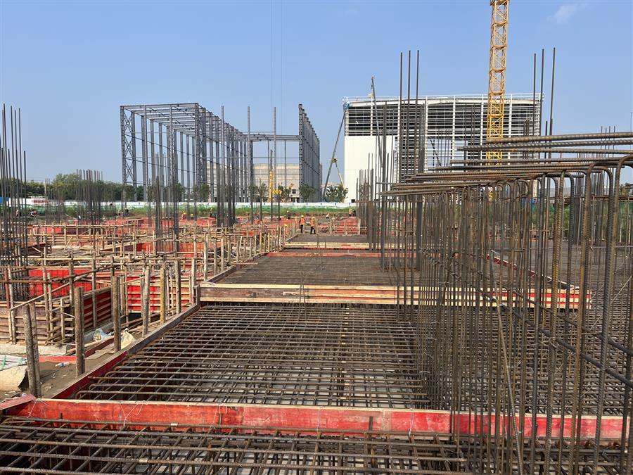 為確保項目建設(shè)順利開展,項目部制定科學(xué)的施工方案,合理安排施工時間,認真抓好安全生產(chǎn)工作,嚴把質(zhì)量關(guān)。目前,項目已完成了3#高標庫基礎(chǔ)混凝土墊層、4#分揀中心及6#冷庫的 CFG 樁、2#分揀中心基礎(chǔ)混凝土墊層等施工內(nèi)容,2#高標庫基礎(chǔ)擋墻鋼筋綁扎已完成100%,模板安裝已完成70%。