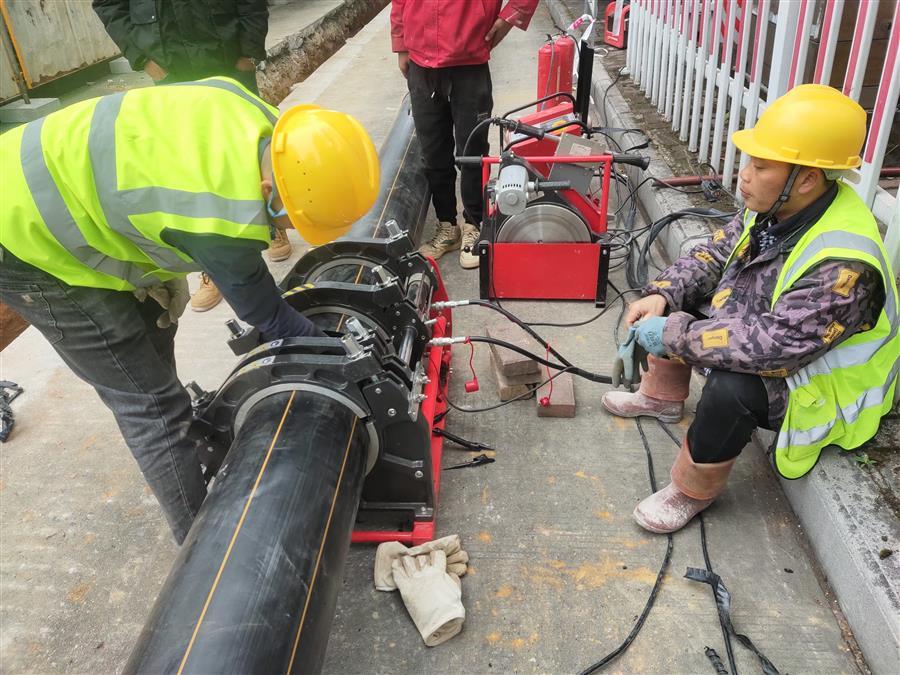 施工人員在航銀路進行焊管作業(yè)