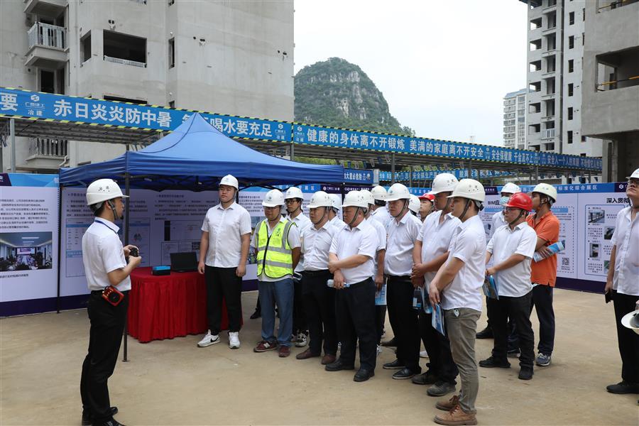 6月15日至17日,冶建公司在第四分公司承建的磐龍府項(xiàng)目舉行2022年“安全生產(chǎn)月”質(zhì)量安全管理標(biāo)準(zhǔn)化觀摩會(huì)暨“安全生產(chǎn)大家談”活動(dòng)。公司董事長(zhǎng)、黨委書記覃振華,總經(jīng)理、黨委副書記蒙勝益,副總經(jīng)理、總工程師廖立波,副總經(jīng)理唐峰,副總經(jīng)理、安全總監(jiān)何勇參加。