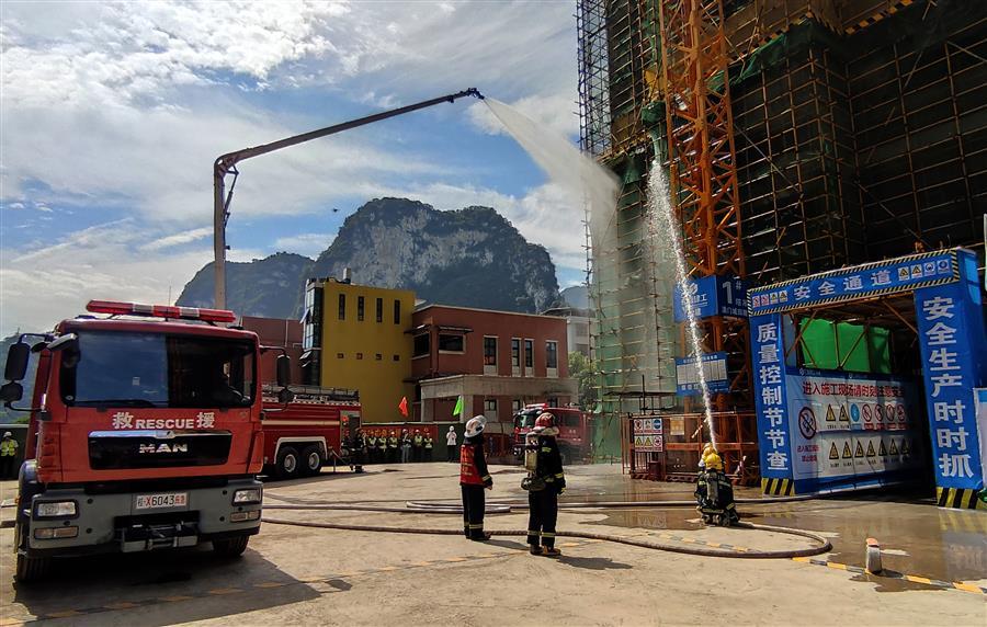 6月14日,河池市2023年“安全生產(chǎn)月”活動啟動儀式暨質(zhì)量安全標準化、消防演練現(xiàn)場觀摩會在冶建公司桂金分公司承建的河池?澳門國際城四期項目部舉辦。河池市住房和城鄉(xiāng)建設(shè)局黨組成員、副局長韋鵬致辭并宣布“安全生產(chǎn)月”活動啟動,冶建公司總經(jīng)理、黨委副書記蒙勝益參加并講話。觀摩會由河池市建設(shè)工程質(zhì)量安全監(jiān)督站副站長覃安納主持。