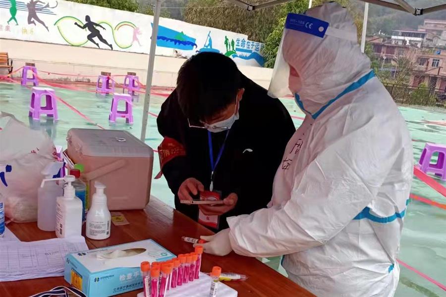 2月7日,阮斌在百色市田東縣印茶鎮(zhèn)那板村六內(nèi)屯青年志愿者隊(duì)參加志愿者工作。他每天除了協(xié)助醫(yī)務(wù)人員進(jìn)行核酸檢測(cè),還要與其他志愿者在村口站崗,仔細(xì)檢查每一位村民的兩碼并測(cè)量體溫。遇到不配合工作的老人,他還會(huì)耐心解釋當(dāng)前疫情防控政策,勸說(shuō)他們不要離鄉(xiāng)走動(dòng),配合防疫工作人員做好疫情防控工作。不站崗時(shí),阮斌會(huì)和其他青年志愿者一起上門宣傳疫情防護(hù)知識(shí),幫助村民做核酸檢測(cè)前的信息錄入。有些老人不會(huì)使用手機(jī),阮斌便耐心將操作流程演示給老人看,再讓老人自行操作一次,遇到老人忘記操作的步驟時(shí),阮斌會(huì)一次又一次地演示,直到老人可以記住全部操作流程。