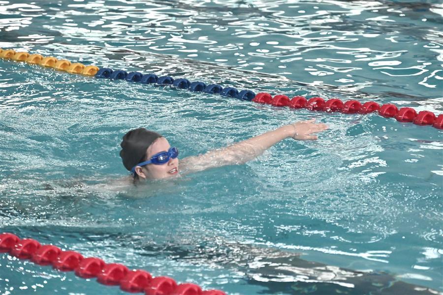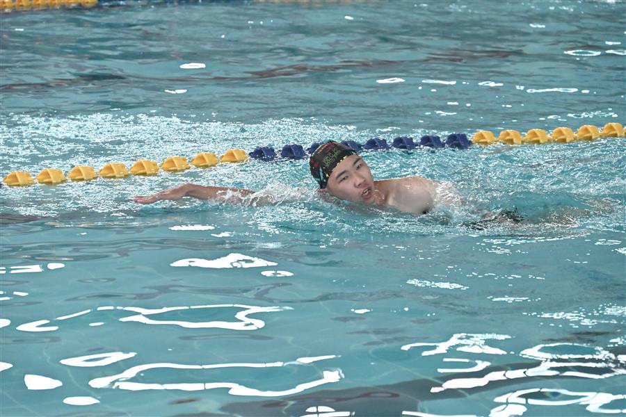 決賽環(huán)節(jié),運動員們紛紛向最后的勝利發(fā)起沖刺,泳道內大家激情澎湃、斗志昂揚,泳池旁啦啦隊的加油助威聲此起彼伏,比賽的氣氛被推至高潮。