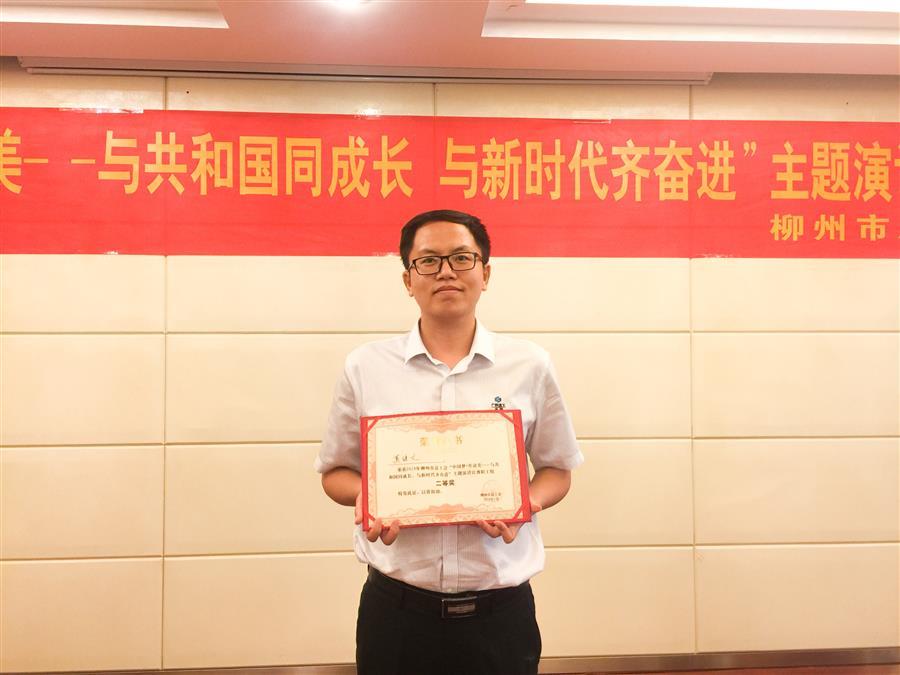 為熱烈慶祝新中國成立70周年,5月30日上午,柳州市總工會舉辦“中國夢·勞動美—與共和國共成長 與新時代共奮進”主題演講比賽,第八分公司副經(jīng)理莫繼文代表參加并榮獲二等獎。